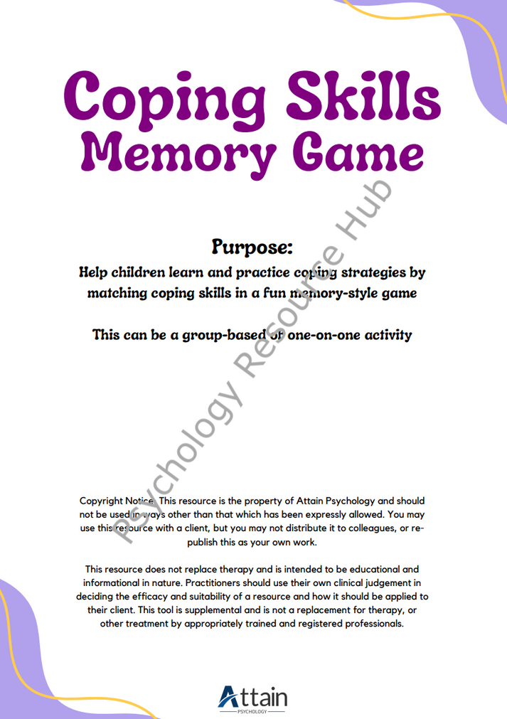 Help children learn and practice coping strategies by matching coping skills in a fun memory-style game. This can be a group-based of one-on-one activity