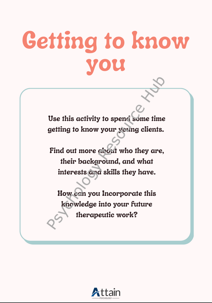Use this activity to spend some time getting to know your young clients.Find out more about who they are, their background, and what interests and skills they have.