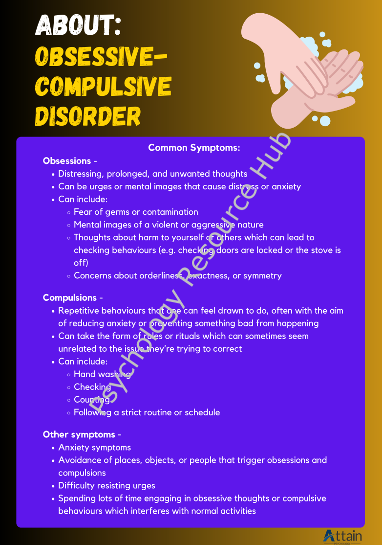 This educational poster features an overview of Obsessive-Compulsive Disorder and makes a great poster of handout to help inform clients or their families.