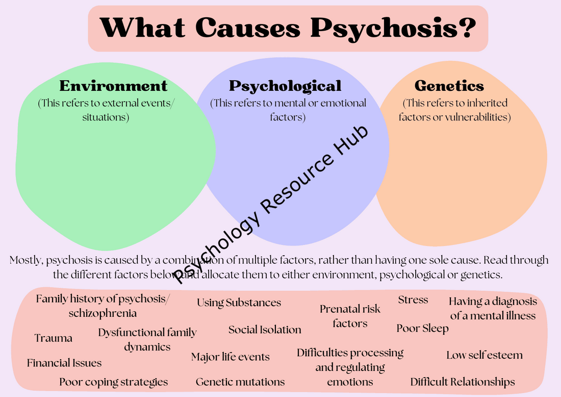 - Causes of Psychosis: An overview of biological, psychological, and environmental factors that contribute to psychosis.